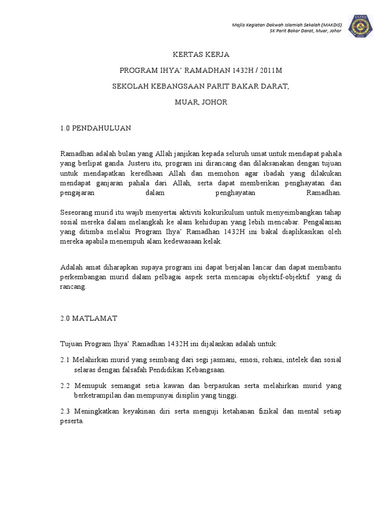 Doc Contoh Kertas Kerja Ihya Ramadhan Mar Nasir Academia Edu
